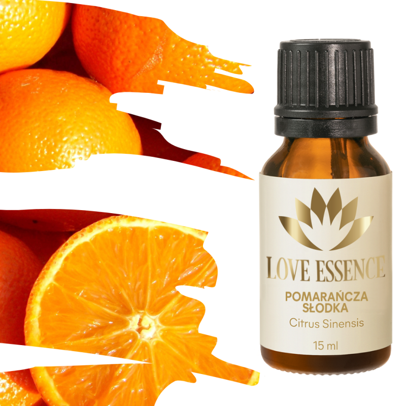 Olejek eteryczny ze słodkiej pomarańczy ma słodki, owocowy, lekki i orzeźwiający zapach. Delikatnie koi, odświeża umysł i uwalnia od wszelkich napięć, reguluje emocje. Wykazuje antybakteryjne i przeciwgrzybiczne właściwości. Wykorzystywany przy schorzeniach skóry, stymuluje układ pokarmowy. Zawiera wysokie stężenie d-limonenu, substancji która posiada silne właściwości antynowotworowe. Szeroko stosowany w leczeniu zaburzeń emocjonalnych. Wykorzystywany w przemyśle spożywczym, perfumeryjnym i kosmetycznym.